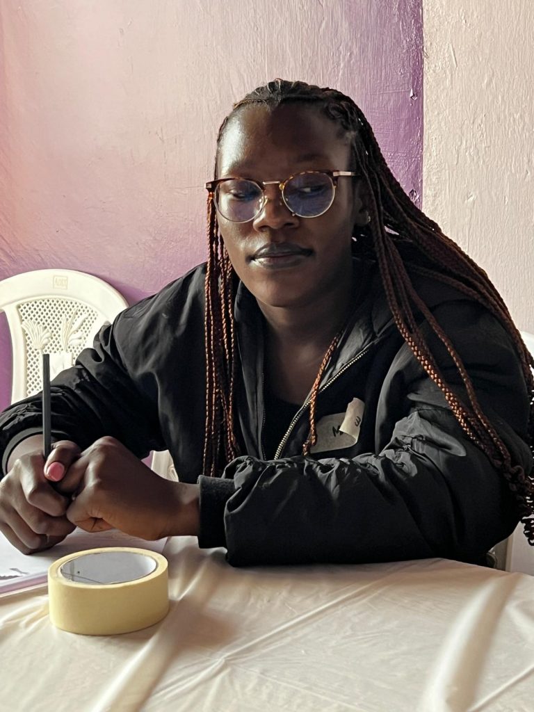 “I like my aunt but she struggles a lot with my sister Phenny and I. I know she would wish to buy both of us school uniforms and shoes and ensure we eat something before we take medicine but she cannot afford it. I never knew my mother but my Aunt showed me a photo of her. I like praying. I pray every day that God will enable me to complete my education. I also pray for Lean on Me because if they close down we will not have any safe space to discuss our issues. I want to study so hard and go abroad.”
